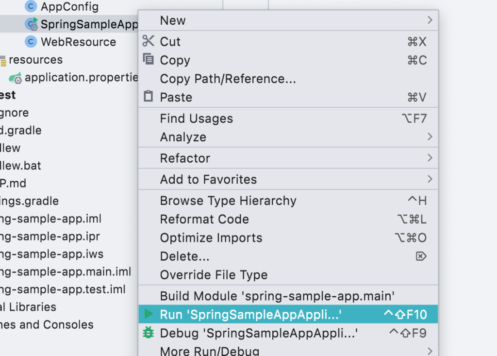 Right click on SpringSampleApplication and Click Run